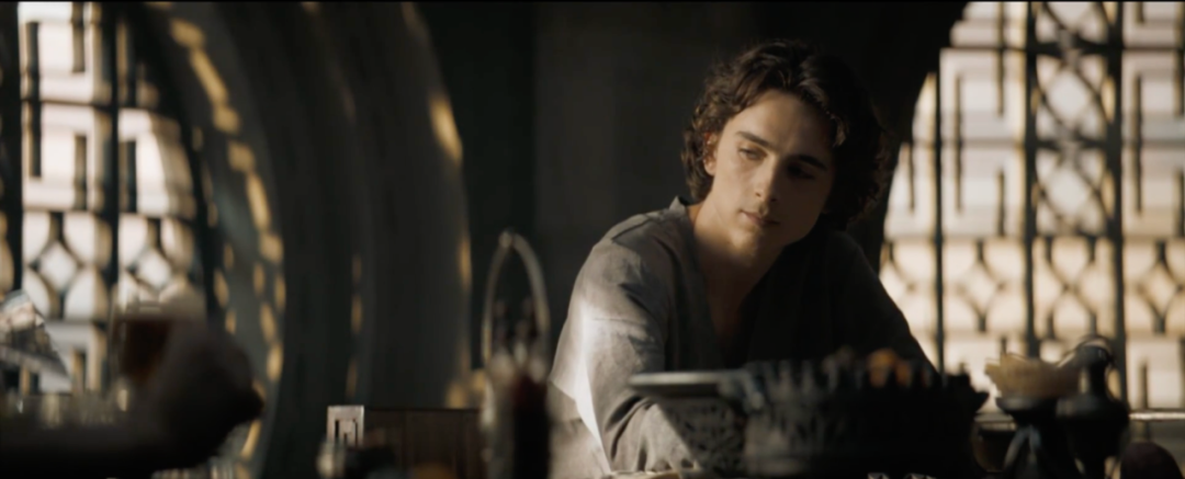 影片开始的节奏很缓慢,以介绍背景及其人物的叙事为主。主人公保罗开始的梦是模糊的、碎片的,这时候的他还未觉醒,梦境的色调为温暖的暖黄色,模糊的逆光镜头,神秘而美好。
