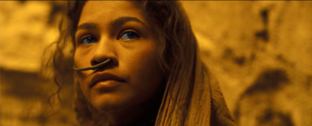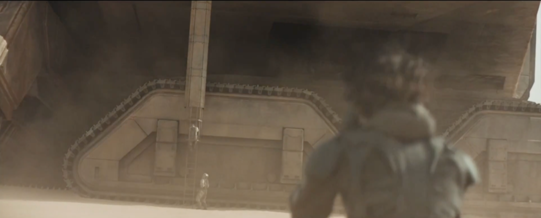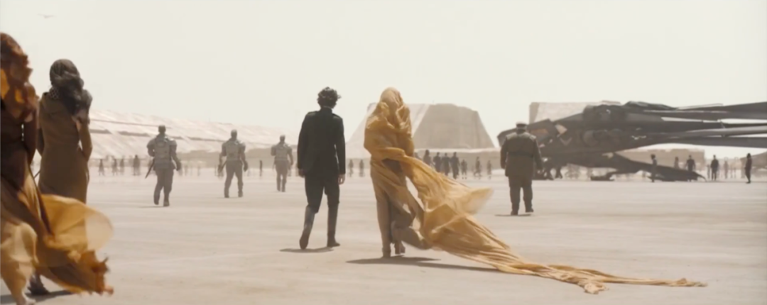 影片没有高饱和,没有鲜明的颜色,没有强烈的色彩反差对比来夺人眼球。浩瀚宏大的沙丘小说作品和极具个人视觉风格的导演丹尼斯·维伦纽瓦产生的独特化学反应。电影《沙丘》无疑是一部不可多得的优秀作品,在当下色彩纷繁鲜明的众多电影中打造了特有的色彩风格。片中色调极为单一,大量的场景留白镜头和极端的比较镜头为观众呈现了带有个人风格的美学奇观,一个磅礴、宏大、深邃的沙丘世界,一个未来科技与原始古典碰撞的沙丘世界,一个史诗级的沙丘世界。